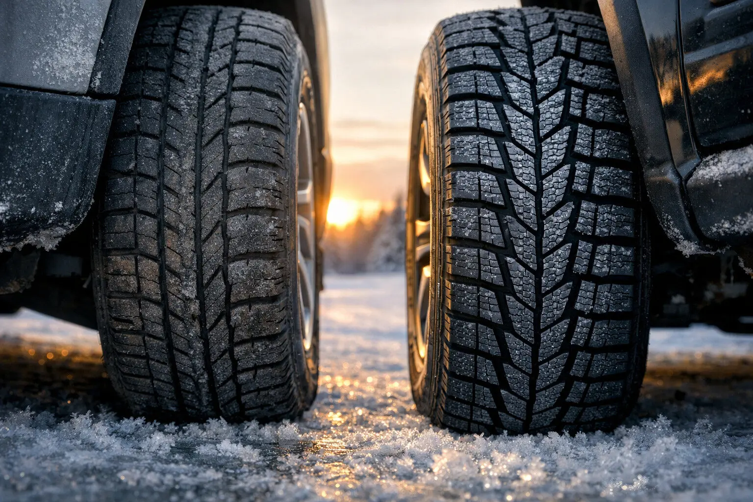 Winter tires rely on deep tread and sipes to grip snow and slush.